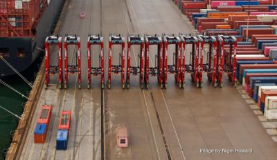 DP World has also been dredging and widening berths at Southampton to ensure the port can continue to handle the world’s biggest ships, a £1.5m, 120 meter extension of a quay crane rail will ensure the world’s biggest cranes can service the entire terminal and a new £3m empty park which opened in September.