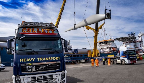 In collaboration with heavy lift specialists Collett Transport, the turbines arrived aboard the 108 metre EEMS Dublin into the Edinburgh port from Esbjerg in Denmark.