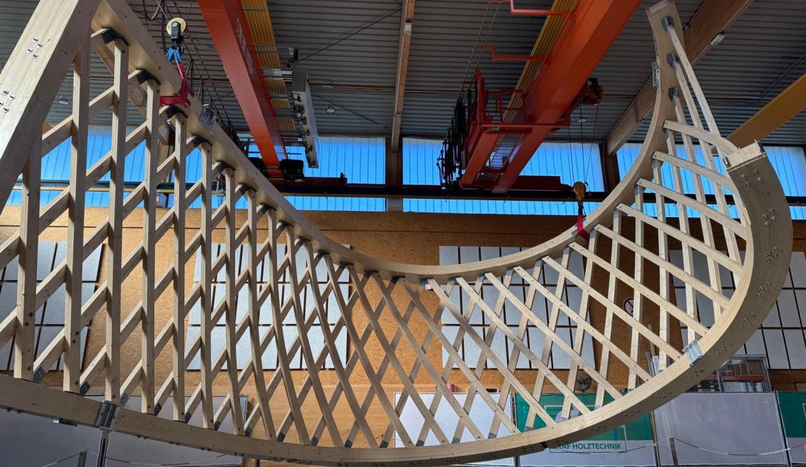 The structure symbolizes the harmony between tradition and innovation, reflecting Austria’s rich cultural heritage and advanced wood construction techniques. The wooden loop represents the first bars of Beethoven’s “Ode to Joy”.