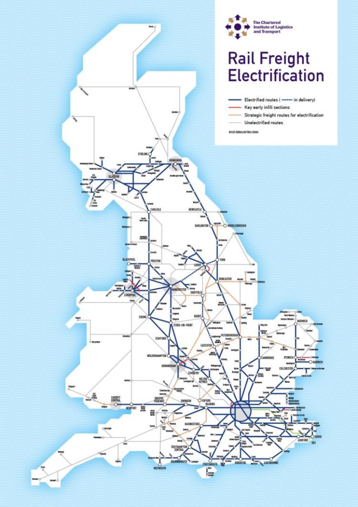 [ March 2, 2023 // Chris Lewis ]A modest investment in overhead wiring for short branch lines could allow 95% of rail freight in the UK to be electrically hauled, compared with only 10% currently, says the Chartered Institute of Logistics and Transport – CILT(UK) in its latest research.