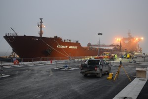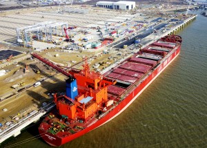 DP World’s new London Gateway port says that it is reducing lorry miles on the country’s roads even before it has opened. It received 90,000 tonnes of aggregate for the construction of the port’s gate complex, in a single direct delivery by the bulk cargo ship Yeoman Bridge, saving 9,000 lorry journeys. According to London Gateway Harbour Master, Colin Hitchcock, the vessel is the largest aYeoman Bridge delivering over 90,000 tons of aggregate for London Gateway's Gate Complex - February 2013Yeoman Bridge delivering 90,000 tons of aggregate for London Gateway's Gate Complex - February 2013ggregate ship to come this far up the River Thames to date.