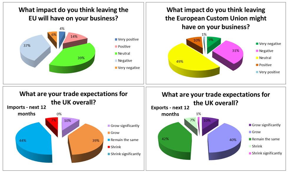 It found that confidence has been somewhat dented by the UK’s planned departure from both the European Union and the European Customs Union, with only 18% believing that leaving the Europe will have a positive impact on their business and the industry as a whole. Nearly nine out of 10 respondents felt that leaving the European Customs Union will have a negative or neutral effect on their business with a mere 11% predicting a positive effect.