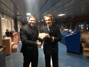 [ November 18, 2019 // Chris ]Portsmouth International Port welcomed Brittany Ferries’ Connemara for the first time on 17 November, with an exchange of plaques between harbour master Ben McInnes and captain, François Le Breton.