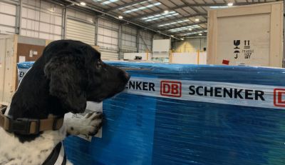 [ August 14, 2023 // Chris Lewis ]German-owned forwarder DB Schenker says its UK arm is using free running explosive detection dogs on a daily basis to detect prohibited items in airfreight. The dogs are a variety of breeds and chosen for their sense of smell and include Spaniels, Labradors, German Shepherd or Golden Retrievers.