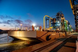 [ July 6, 2018 // Chris ]Eureka Shipping has based its multipurpose floating bulk terminal Vesper at the port of Tilbury under a four year agreement with London Container Terminal and Cemineral. The 125m long vessel has a storage capacity of 10,000-tonnes across its four holds and can receive bulk powder from ships, store it and then load directly to powder tanker trucks for delivery to customers. Cemineral is an established importer of fly ash into the UK through Immingham and the new terminal in Tilbury allows it to supply to the construction market in the south east of the UK.