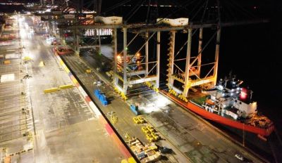 DP World London Gateway took delivery of Europe’s largest quay cranes on 21 February. Weighing more than 2,000 tonnes, they will come into service at London Gateway’s new £350m fourth berth, set to open this summer.