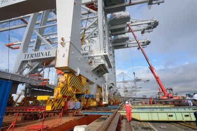 [ September 1, 2020 // Chris ]Haropa – Port du Havre -has taken delivery of four of the world’s largest container gantries from China for its Port 2000 scheme to handle the world’s largest container ships. They are scheduled to come into service in October.