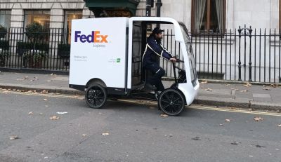 FedEx Express currently operates a total of 34 e-cargo bikes in the UK, complementing its vehicle fleet in Greater London, Glasgow, Cambridge, Huntington, and Norwich where they have replaced diesel vehicles for serving emissions-restricted zones.