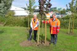Mark Seaman (left), finance director, and Robert Page, head of human resources, at the Port of Felixstowe plant a tree to launch the Go Green initiative at the port