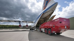 [ September 20, 2012 // Chris ]Volga-Dnepr Airlines has moved two Amdac Carmichael mobile fire fighting trucks from East Midlands Airport to Kandahar, Afghanistan. The 30-ton cargo was carried on an IL-76TD-90VD freighter flight on behalf of freight forwarding customer, Transact International, which specialises in organising military and humanitarian aid shipments.