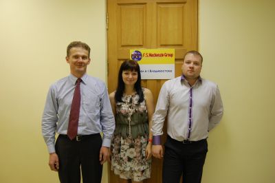 (Left to right): Dmitriy Maslov (director, Vladivostok branch) with Urzhumova Svetlana (logistics specialist) and Sidorov Matvey (logistics manager)