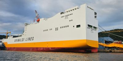 [ August 30, 2024 // Chris Lewis ]Grimaldi Group has taken delivery of its fifth G5 multipurpose ro-ro ship at the Hyundai Mipo Dockyard in South Korea. The Great Casablanca will be used on the service between Northern Europe and West Africa and will be one of an eventual six sister ships. With a deadweight of 45,684 tonnes, these ships are able to transport 4,700 linear metres of rolling freight, 2,500 CEU (Car Equivalent Units) and 2,000 TEU.