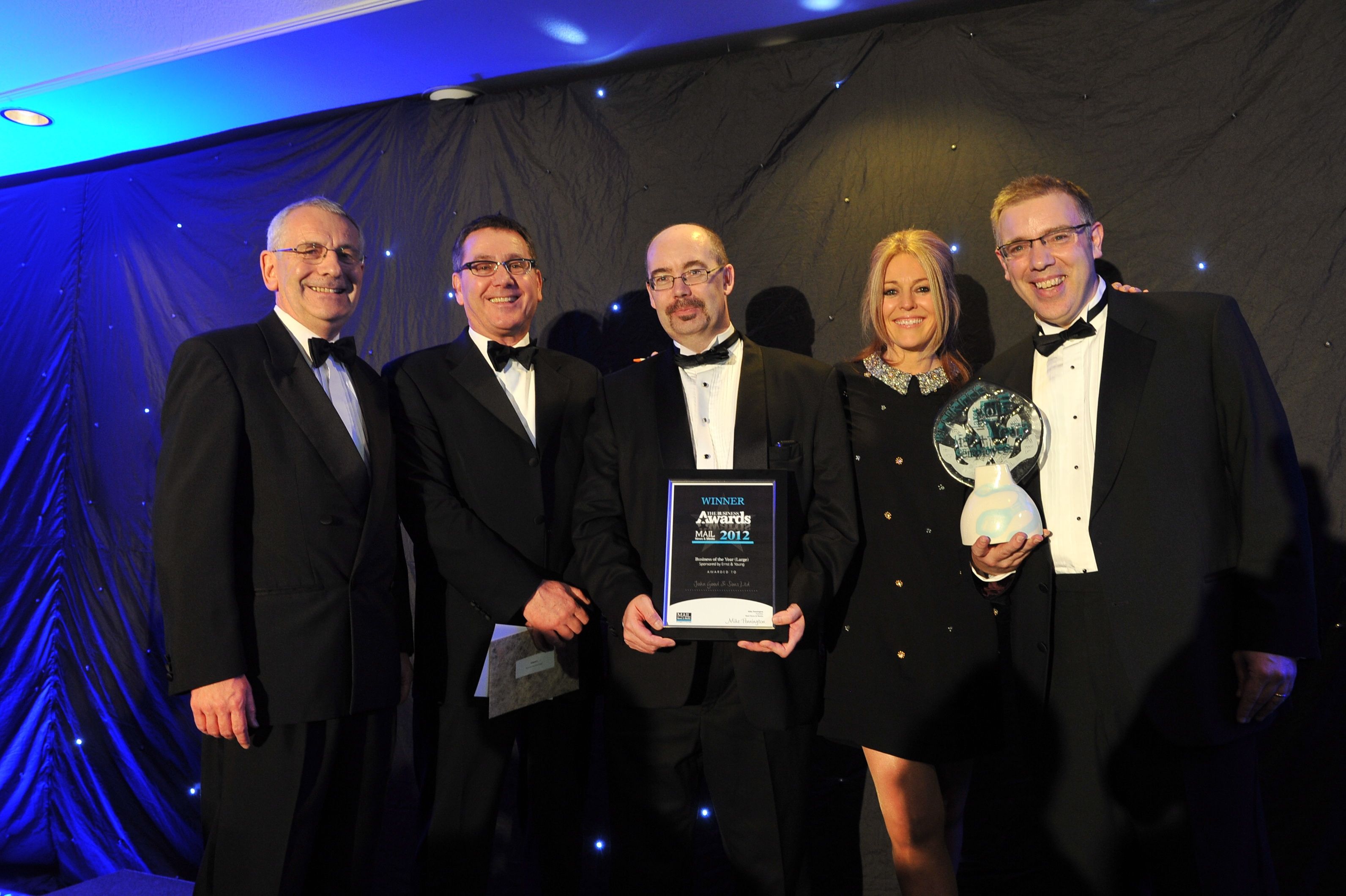 The Mail News Media Business awards at Willerby Manor, Willerby. Pictured is Cat 8 Business of the year large 150+ employees Sponsored by Ernst and Young, presented by Alan Kirkman winners John Good and Sons Ltd. From left is John Rutherford, Alan Kirkman, Jogn Garnier, Helen Fospero and Alan Platt. Pictures: Kate Woolhouse