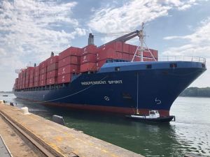 [ July 26, 2019 // Chris ]The first Independent Container Line (ICL) vessel arrived at DP World Southampton on 25 July after the carrier announced that it would be moving its UK call from Liverpool to improve year round schedule reliability. The managing partners explained that increasingly adverse weather conditions in the North Atlantic has caused delays to its service each winter and that the change would bring improved reliability. The service calls at Chester, Pennsylvania, Wilmington, North Carolina, and then onto Southampton, and Antwerp with four ships on a 28 day rotation providing a weekly service.