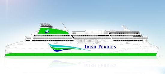 The new ship is likely to go into service on routes served by the chartered ship MV Epsilon, currently year round services Dublin-Holyhead midweek, and Ireland-France at weekends.