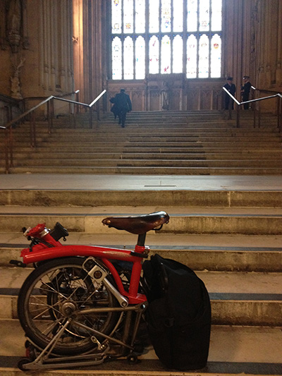 John Shirely says: “We have had no company cars for 17 years. Instead we use mainly integrated transport, mainly Brompton folding bicycles and trains.” The high-speed train service from Dover to London makes trains a faster and more attractive option.
