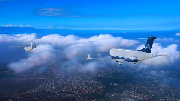 The tow gliders are fitted with electrically powered propellers that allow them to take off and land automatically and can boost payload significantly, while only marginally increasing fuel consumption in the lead aircraft.