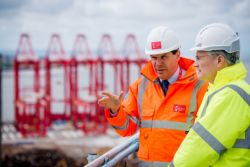 Transport Minister, Andrew Jones visited the Port of Liverpool on 16 May to view the latest developments at Liverpool2 as the terminal approaches its opening. The minister received a tour of the site during a visit to the city to discuss prospective improvements to the major A5036 corridor.