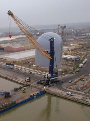 [ January 29, 2025 // Chris Lewis ]Forth Ports Tilbury has taken delivery of a Liebherr LHM 550 mobile harbour crane. It will support operations including Aggregate Industries’ new cement grinding manufacturing facility and import terminal and, once operational in 2026, will handle granulated blast furnace slag (GBFS) a low carbon alternative to conventional cement.