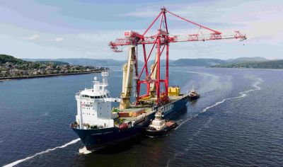 [ June 3, 2024 // Chris Lewis ]The first of two new £25m ship-to-shore cranes arrived in the Port of Greenock on 2 June from Cork in Ireland.