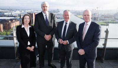 L to R: Dr Theresa Donaldson; Infrastructure Minister, John O’Dowd; Economy Minister, Conor Murphy; Belfast Harbour Chief Executive, Joe O’Neill