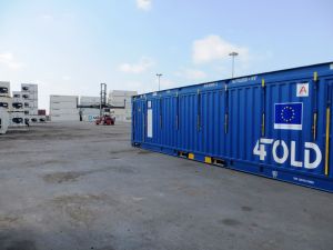 [ September 21, 2016 // Chris ]Holland Container Innovations is holding demonstrations of its 4FOLD foldable box at the HCCR depot in Hamburg on Tuesday, 27 September, Wednesday, 28 September and Thursday, 13 October. The events are open to everyone following registration. Empty 4FOLD containers can be folded to a quarter of its normal height, allowing four to be handled and transported as if they were a single standard container.