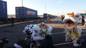 [ January 18, 2017 // Chris ]Diplomats and rail industry officials gathered at DB Cargo’s terminal in Barking today (18 January) to celebrate the arrival of the first container train service from China to the UK. The train originated in Yiwu near Shanghai and made the 7,500 mile journey to East London in 18 days, twice as fast as transport by sea. The service was operated as a trial but there are hopes that it will become a regular run if sufficient cargo can be found, especially eastbound from the UK.