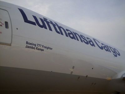 A week after the maiden comemrcial flight of Lufthansa Cargo's first Boeing 777F, a second new Triple Seven arrived in Frankfurt on 27 November. The new aircraft has been christened Jambo Kenya (Hello Kenya) in recognition of the importance of Africa as one of the most important air freight growth markets. Lufthansa Cargo currently flies to four destinations on that continent.