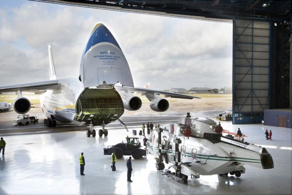 Ruslan International and German charter broker Karpeles Flight Services - part of DB Schenker - have moved a British-built AgustaWestland AW101 helicopter from the UK to Africa. It flew under its own power from AgustaWestland's Yeovil factory to London Stansted Airport, where technicians dismantled it ready for loading. The AN-124 was positioned partially inside the hangar to protect the helicopter from the weather, and then flew it to destination which ...