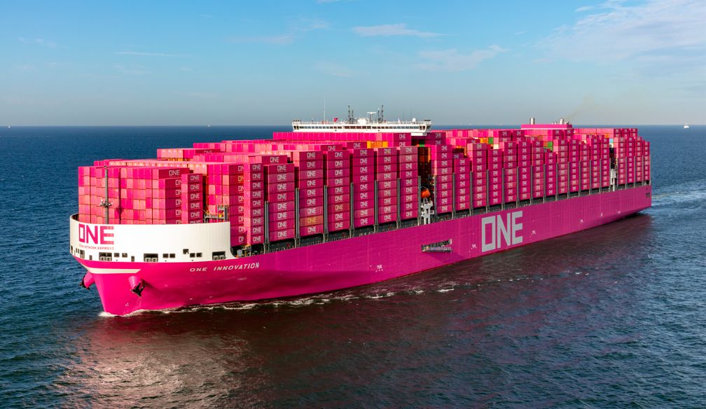 The ONE Innovation is set to turn the town pink when she arrives in the port of Hamburg tomorrow (15 July). The largest vessel operated by the three-line Japanese consortium (K Line, Mitsui OSK and NYK) and the first of six new Megamax vessels to join ONE's fleet, she is 400m long, 61.40m wide and has a capacity of 24,136teu. She also comes with a bow windshield and an exhaust ...
