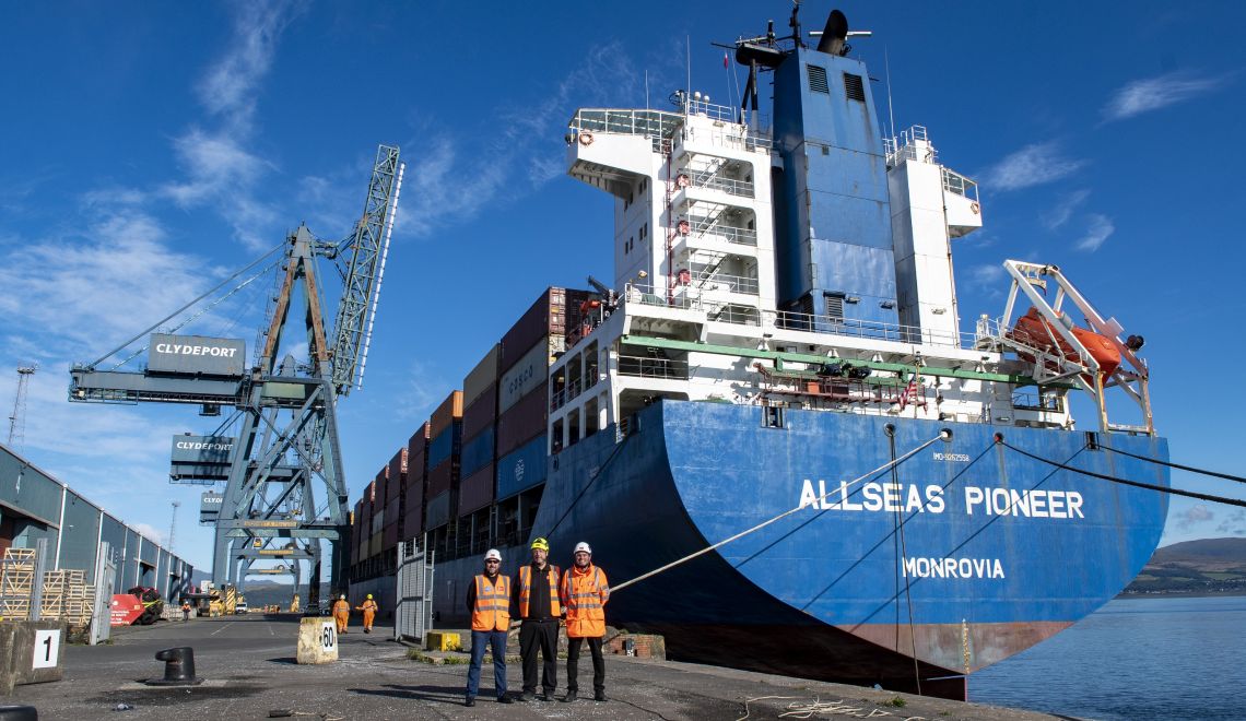 Scotland’s first-ever direct container service from China and Scotland berthed at Greenock Ocean Terminal on Saturday 27 August.