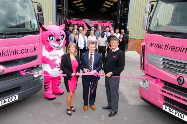 Palletways member The Pink Link celebrated the official opening of its new premises at Oakes, Huddersfield, with the help of Huddersfield Town chairman, Dean Hoyle, who marked the event by the cutting of a pink ribbon, flanked by player Murray Wallace and former Town favourite, Andy Booth. The Pink Link team was also joined by a number of customers, including Card Factory, National Flexible and Easy Pave.
