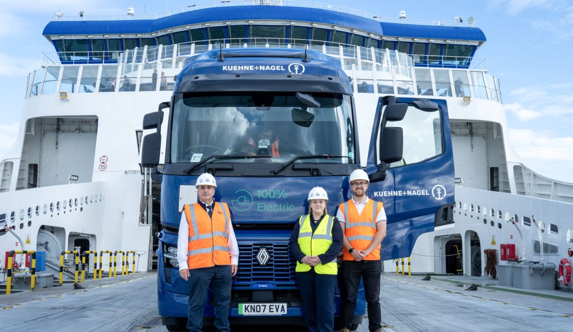 Kuehne+Nagel, P&O Ferries and Renault Trucks have partnered to operate the first heavy-duty electric truck carrying freight across the English Channel via ferry.
