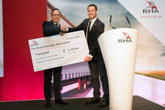 The Road Haulage Association (RHA) has marked its first anniversary as a corporate member of Transaid by presenting the charity with a cheque for £5,354 at the Association’s annual members’ lunch.