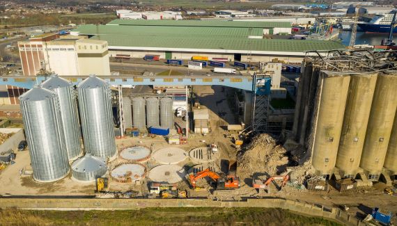 Rebuilding work is underway at the UK’s largest grain terminal at the Port of Tilbury following a fire in July 2020 which damaged its grain silos. Demolition of the damaged concrete silos is underway and, at the same time, construction of phase one of metal silos is underway with the ...