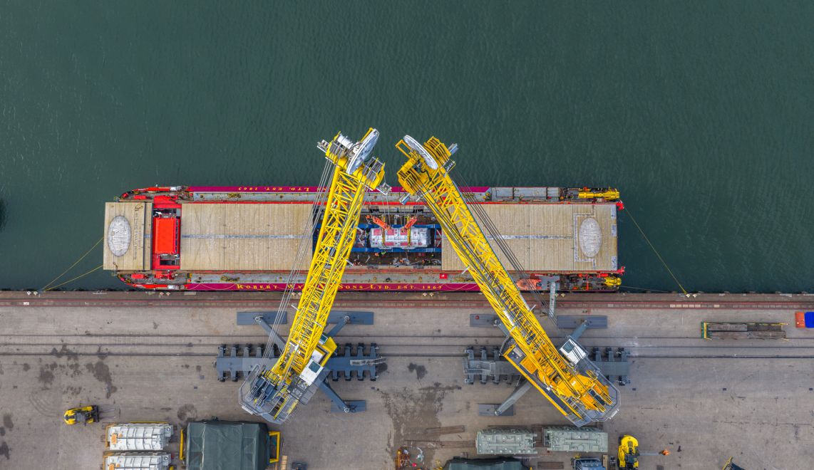 The operation began at Portland Port, where Wynns’ heavy lift ro/ro barge Terra Marique loaded a 24-axle girder frame trailer of 140 tonnes. The vessel then proceeded to the RHB Terminal in Rotterdam, where a 215-tonne transformer was
