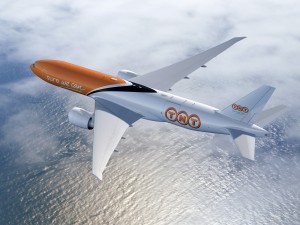 [ October 21, 2010 // Chris ]TNT Airways has a signed an agreement for the delivery and lease of three new Boeing 777-200 Long Range Freighters with Guggenheim Aviation Partners. The first aircraft will enter service by July 2011 and the others by the end of 2011. The new aircraft will replace two owned B747-400ERFs and two B747-400ERFs on short-term lease on routes between Europe and Asia and will also reduce TNT’s reliance on commercial line-haul and external short-term contract capacity. While the B777 freighter offers a maximum payload of 107 tons compared to the 117 tons of a B747, it carries more payload than a 747 over distances greater than 13,000km.