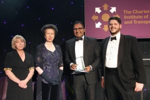 (Pictured: Mahesh Kurukulasuriya (third from left) with (from left) CILT President Beverley Bell FCILT, HRH The Princess Royal and Sean Figura, senior recruitment consultant.