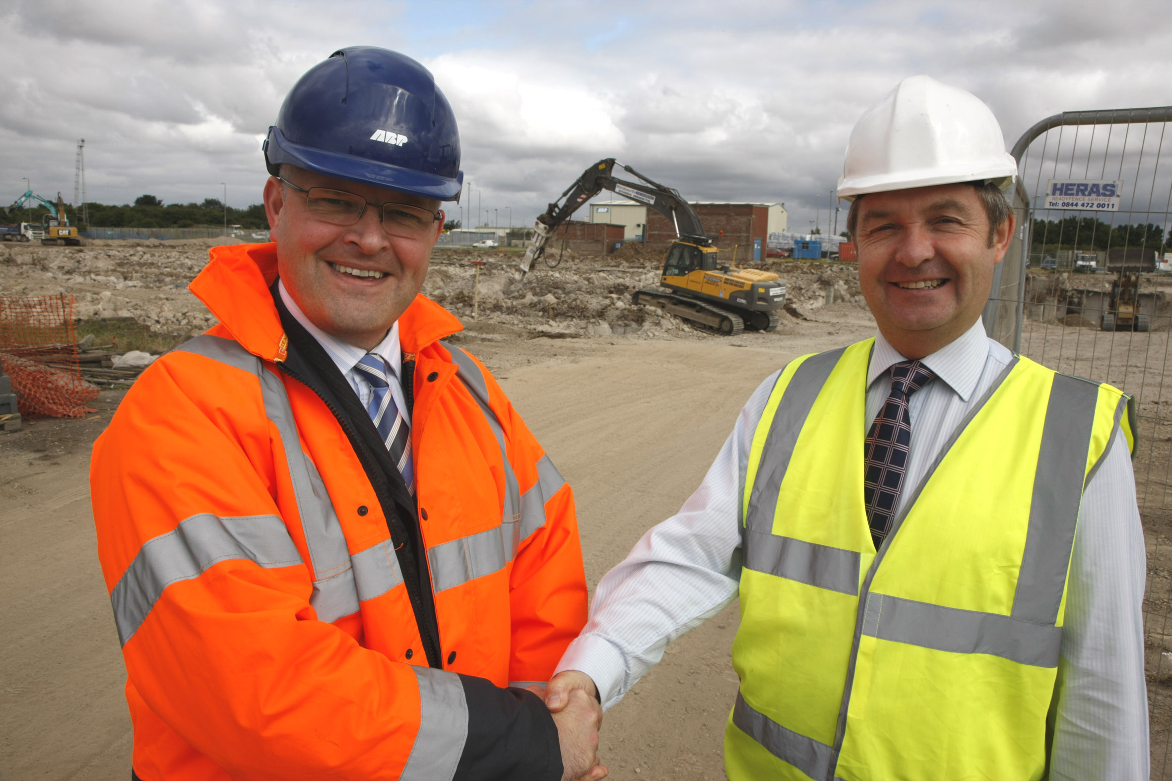 L-R: Matt Jukes, ABP Port Director Hull & Goole; and Nick Green, Managing Director TransAtlantic UK Ltd, at the construction site of the new terminal area for TransAtlantic UK Ltd in King George Dock