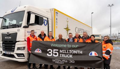 [ March 14, 2024 // Chris Lewis ]LeShuttle Freight carried its 35 millionth truck under the Channel on 13 March. Since 1994, more than 750 million tonnes of goods have been transported via the tunnel aboard one of the 15 truck shuttle trains which carry 25% of the goods exchanged between the UK and continental Europe.