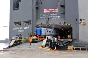 Built in Japan, Hitachi is bringing its lightweight, aerodynamic bullet train technology to the North. The 50.4 tonne carriages arrived from Kobe on board the Höegh Antwerp, and will be stored at the Port’s secure Tyne Dock estate before continuing on their journey to Hitachi Rail Europe in Newton Aycliffe.