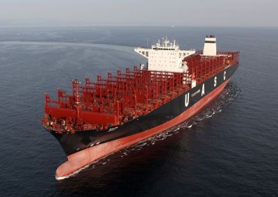 [ November 27, 2014 // Chris ]United Arab Shipping Company (UASC) christened its LNG-ready ultra large container vessel MV Sajir in Ulsan, Korea on 27 November. The first ship of its kind in the world, it is part of a fleet of 17 similar vessels being build by Hyundai with capacities ranging from 15,000 to 18,800teu.