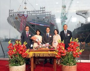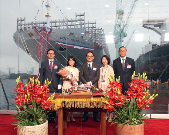 [ September 29, 2017 // Chris ]OOCL has christened its latest 21,413teu TEU G class containership – currently the world’s larges – the OOCL United Kingdom – the fourth of six ordered from Samsung Heavy Industries in Korea.