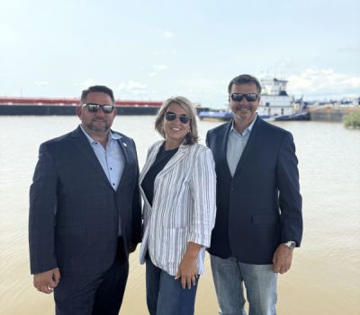 Left to right: Rock Bordelon, Kim Montie (executive director, Cameron Parish Ports, Harbors and Terminals) and Brent Patterson